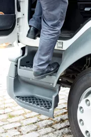 - Щоб уникнути нещасних випадків при вході і виході наші вантажівки оснащені нековзними сходами і зручними поручнями.